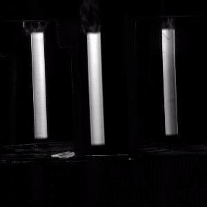 On filme le choc lors de l’arrivée de la craie sur le support avec une caméra ultra-rapide. Derrière la craie se trouvent deux miroirs qui permettent d’obtenir une vue à 360° de l’impact.