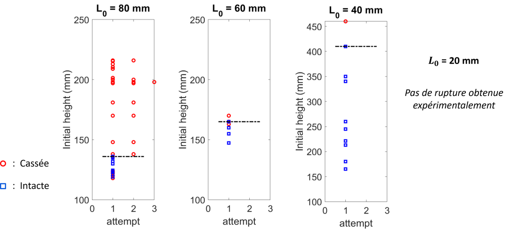 Comme on aurait pu s’y attendre intuitivement, cette hauteur maximale de non rupture croit décroit avec la longueur de la craie. De plus, on n’en a pas relevée pour des craies de 2cm.