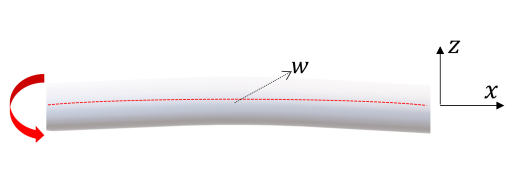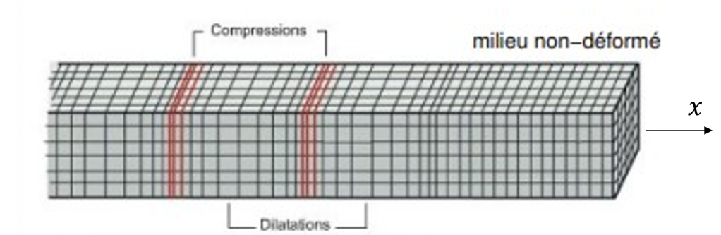 On considère un premier modèle de poutre dans laquelle une onde de traction-compression se propage d’équation :