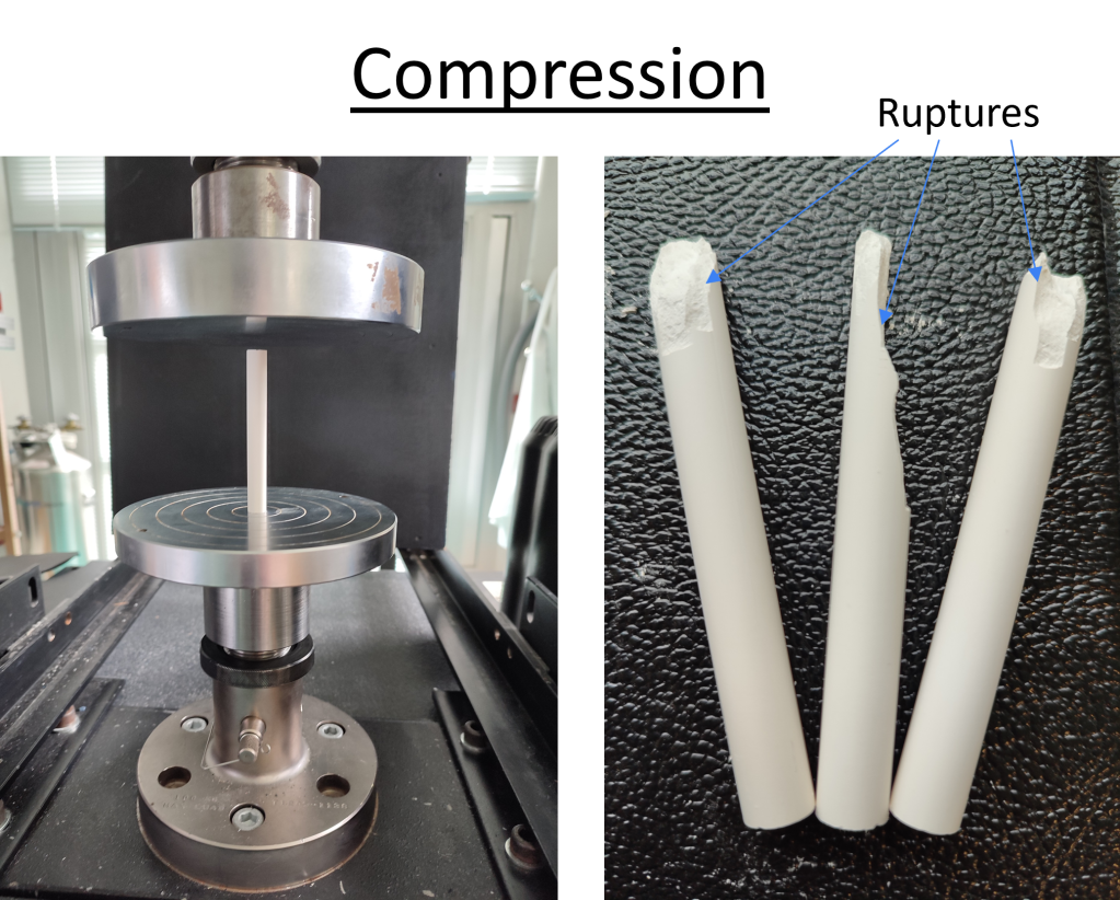 Comme pour la traction, on obtient une fracture droite semblable à ce qui est observé lors des largages de craies.