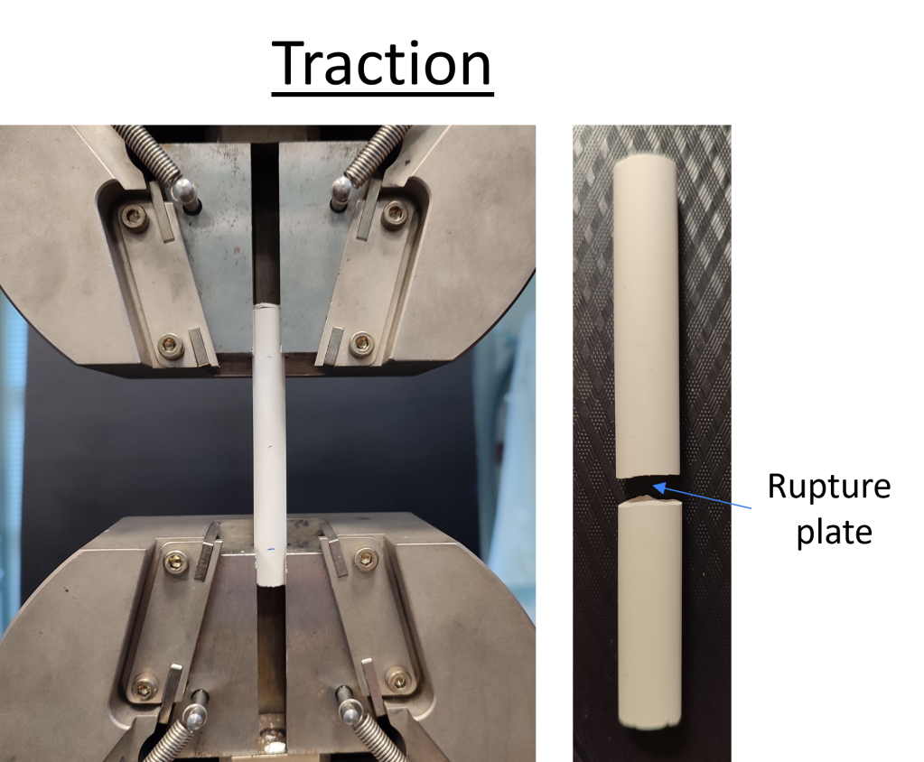 Pour trancher entre les hypothèses de traction et de flexion, on effectue manuellement des essais de flexion :