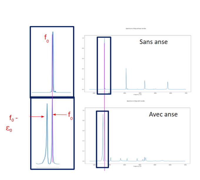 Dans le cas de la présence de l’anse, on constate qu’elle joue le rôle “Tuned mass damper”, qui est un dispositif monté dans les structures (populaire dans les tours) pour réduire les vibrations mécaniques, constitué d'une masse montée sur un ou plusieurs ressorts amortis.