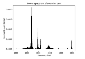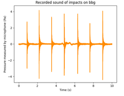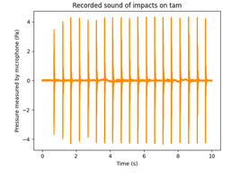 Afin de faire cela il nous fallait donc faire deux choses. D’une part, obtenir les modes propres de notre tasse. Pour cela il fallait enregistrer le son émis par la tasse lorsqu’on la tape puis analyser le signal. D’autre part, il nous fallait générer des modes propres pour plusieurs valeurs des paramètres de la tasse et comparer la base de données générée avec les valeurs acquises lors de l’expérience