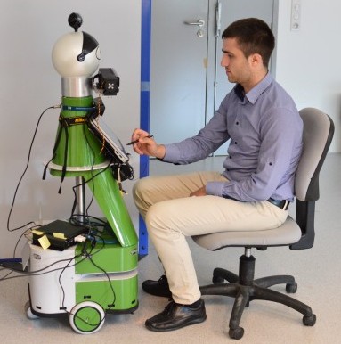 Participant interacting with the Kompai robot (New):